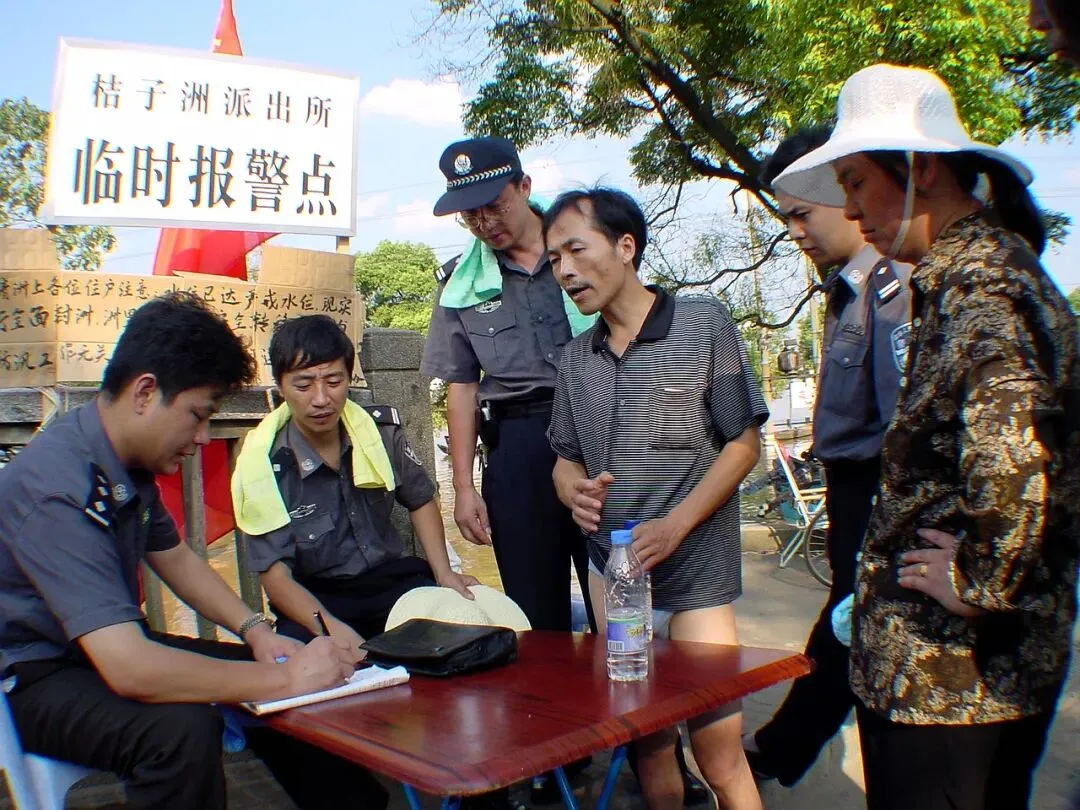 下了橘子洲的引桥,就看到路口桔子洲派出所设在这是的临时报警点。