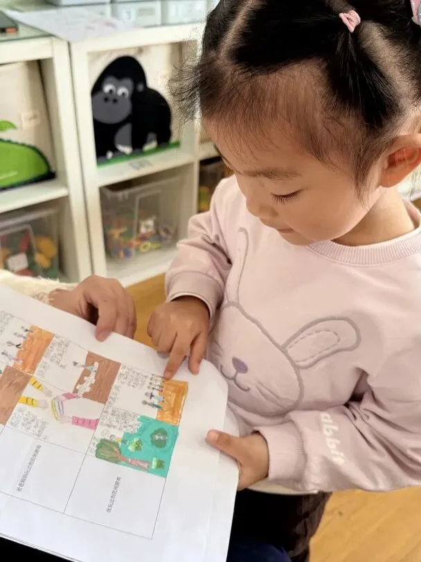 孩子们带着好奇心听老师讲《老鹰抓小鸡》的故事,纷纷为勇敢的鸡妈妈点赞,也初步明白了这是一个“躲藏”与“抓捕”的游戏。