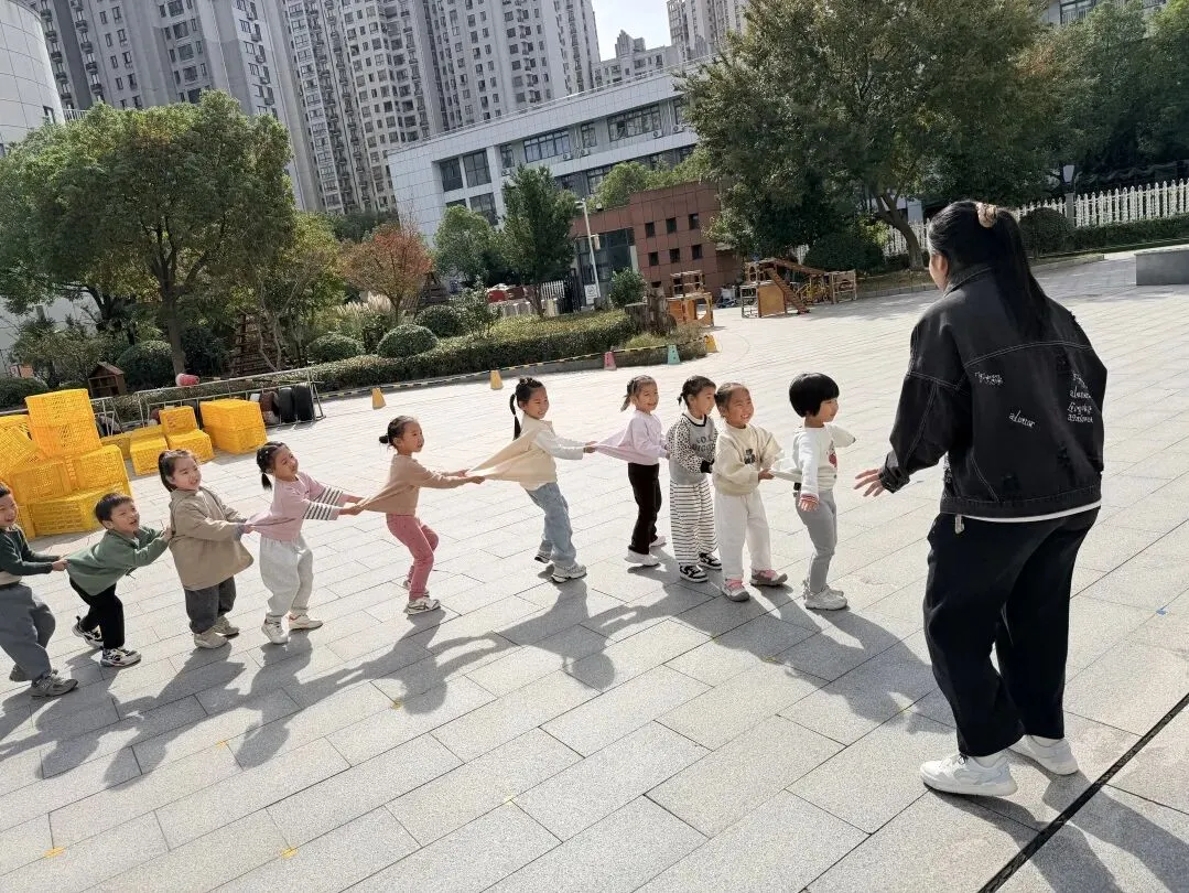 一块手帕、一首童谣就可以玩转民间游戏。通过遵守儿歌游戏的简单规则,幼儿能理解需要主动邀请同伴,还能在输赢中学习“尊重对手”,比如赢了不骄傲、输了不气馁,提升情绪调节能力。孩子们很喜爱丢手绢带来的快乐游戏体验。