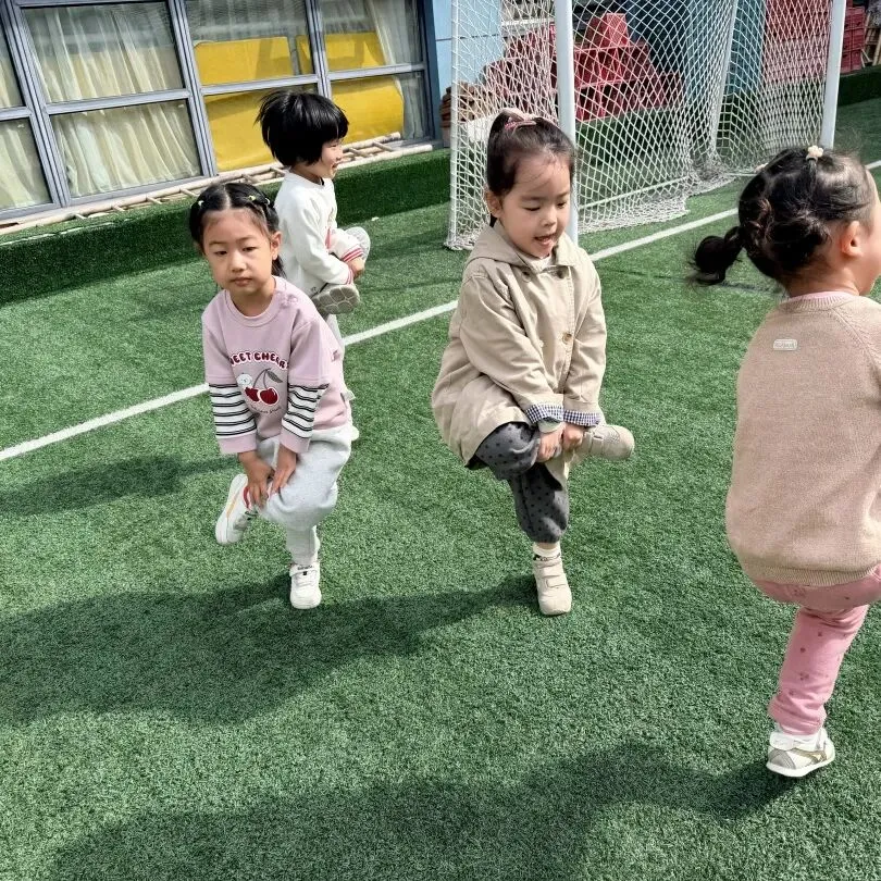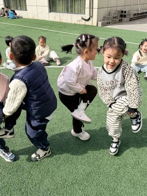 (单脚站立、用膝盖互顶的经典互动游戏)能全方位发展幼儿多项核心能力,兼顾趣味与成长。平衡感+肢体的控制、下肢力量+爆发力以及身体感知能力。游戏中需快速观察对方的移动方向、进攻节奏,及时调整自己的站位和进攻方式,锻炼瞬间决策能力。