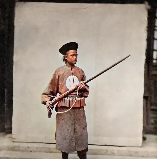 这个单独站着的娃娃脸是少年兵或乡勇,新做的弹带系在腰上,手里细长的鸟铳擦得发亮,眼神却稚嫩,我看得有点不是滋味,时代把人推到前面,他也就硬着头皮学着大人的样子。