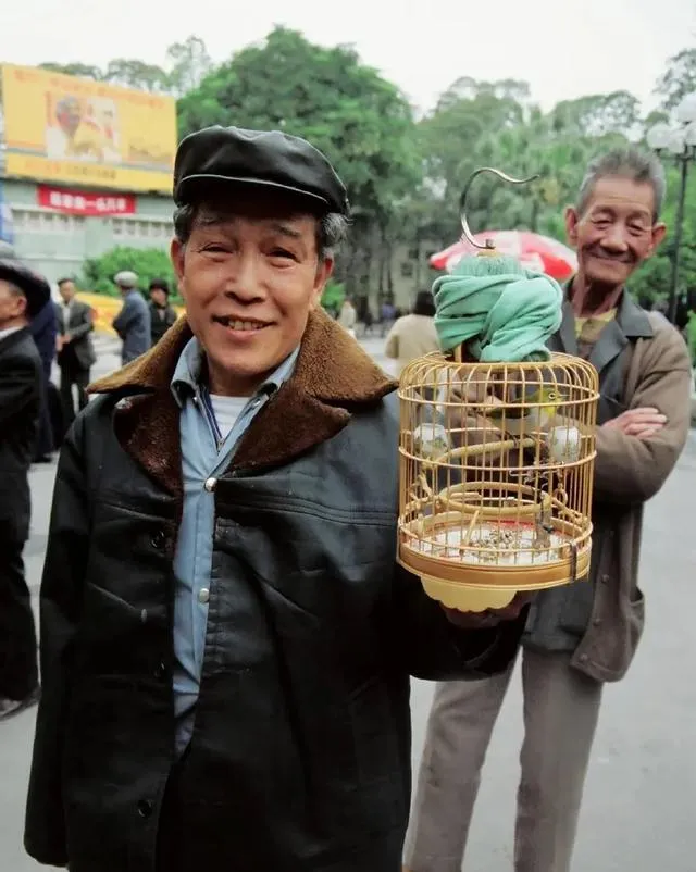 这个圆滚滚的竹笼子,细篾子密密扎成,盖布一掀小黄鸟就叫,爷爷说清早公园里挂一长串笼子,茶缸放在脚边,聊半天只为鸟儿唱得好听。