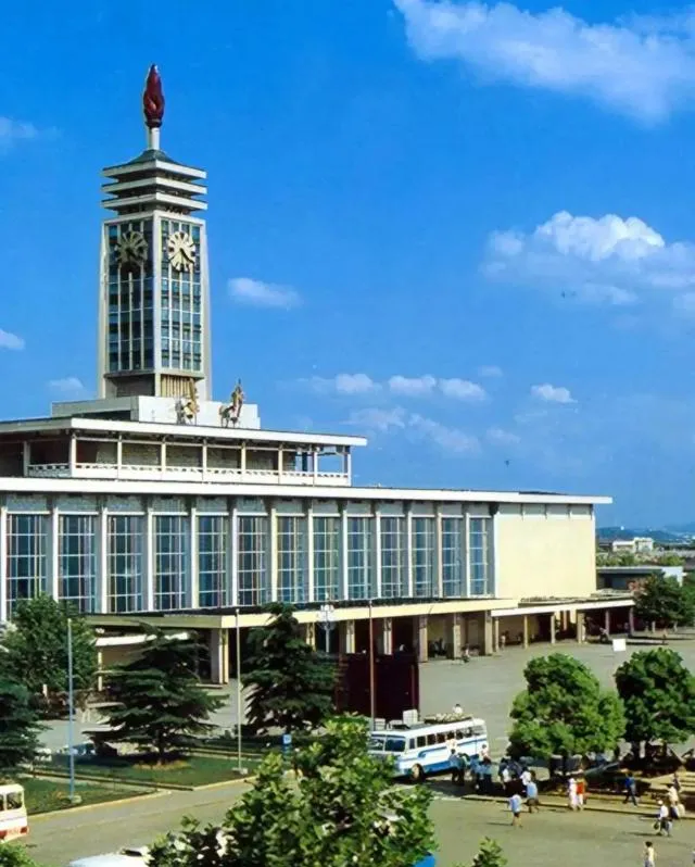 这栋大楼顶上立着火炬和大钟,远远就看得见,站前广场树影一大片,长途车在阴影里打盹,爸妈拉着箱子小心看包,广播里一遍遍催客。
