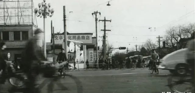 这个黑白影像里写着文华文化用品商店,橱窗里摆彩墨钢笔和练字帖,学生们最盼周末来淘降价色粉,买回去画小人书,手一抖袖口上就开了花。