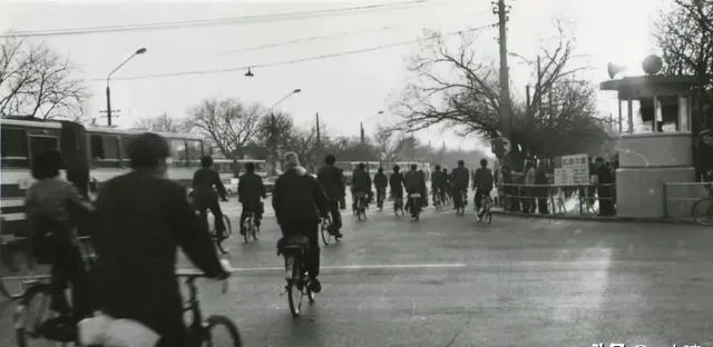 看这拨人全窝在自行车鞍上,腿一上一下像织布机,交通岗楼里警察吹哨子,谁逆行就被挥手拦住,那个年代讲秩序也讲面子。