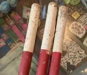 这三根红白相间的是旧时的烟火棒,节日敲锣打鼓时点一个,滋啦冒火星,我爸总让我站远一点,说好看归好看,火点子溅衣服上就是洞,现在放烟花要审批,那热闹的味儿少了点。