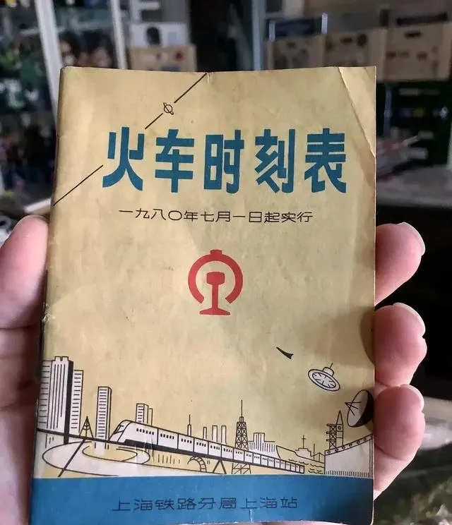 图中这本小册子叫火车时刻表,黄纸壳外皮有道折痕,印着一行字一九八〇年七月一日起实行,指尖一捏能听见纸纤维嘎吱响,爸爸以前出差就靠它掐点换乘,没手机没导航,铅笔在边角上划拉一条线,像给旅途打了个腹稿。