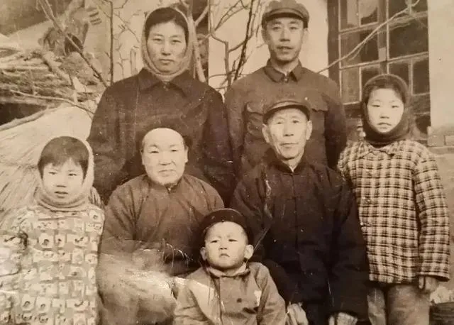 这张泛银的照片就是全家福,棉袄立领,帽檐压得低低的,爷爷抱着最小的那个外孙,镜头里没笑却暖得很,那时候拍照得穿最板正的衣裳,照相馆的师傅把肩膀往里按一按,说这样显得精神。