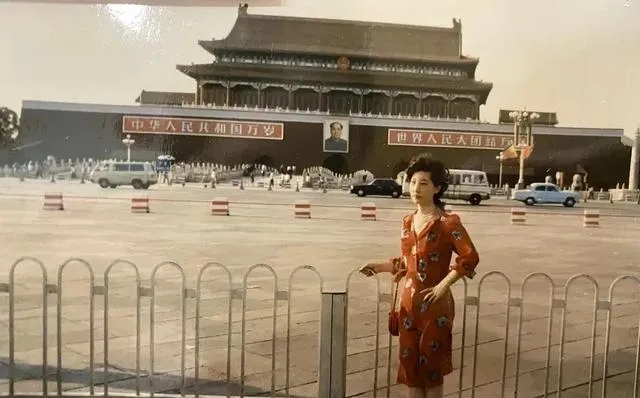 这张是天安门前的游客照,红底碎花裙在风里鼓鼓的,铁栅栏旁边的公共汽车慢悠悠开过去,姑姑说第一次进城就要先到这站牌下站一站,拍完再去王府井买糖炒栗子,一半热气给了相机,一半留在兜里。