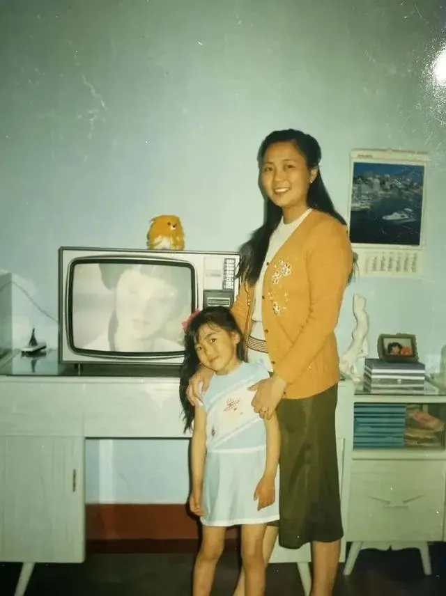 图中摆在柜子上的就是彩色电视,银灰机壳有调台旋钮,天线像两根短叉抬着头,电视顶上还坐着个毛绒小玩偶,妹妹问为啥画面有雪花点,妈妈笑着说,台里播电视剧,邻居能听见整栋楼一齐拍手的声音。