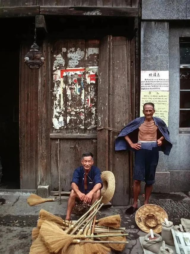 这个门板前的摊叫草帚摊,高粱穗扎成束,一根根竹柄靠在墙上,老匠人赤着膀子,麻绳往腰上一勒就干活,奶奶说买帚要挑穗密的,扫院子不扬尘,才算对得起一天的清晨。