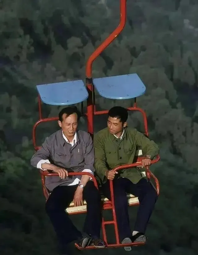 这个红铁框的是香山缆车,两张蓝铁皮当伞,脚下是绿到发乌的树海,叔叔第一次坐直喊腿软,旁边同事说你别往下瞧,数数杆子就到站了,话糙理不糙,眨眼就到顶。
