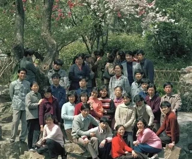 这一大群是春游合影,有人探头有人躲树后,毛衣颜色跳来跳去,老师说站整齐点,快门一按就把一整个春天关进纸里,翻出来还是那股子花粉味。