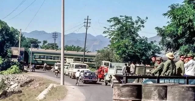这条弯弯的道旁边是绿皮火车,卡车、摩托、拖拉机凑在一道,像赶集,风吹过来一股柴油味,车窗里有人递瓜子壳,有人探头看山,慢不怕,能到就行。