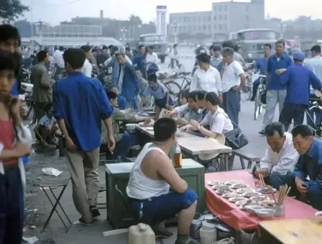 这片人声鼎沸的是夜市摊,铁皮桌上摆着臭豆腐和烤串,啤酒瓶在脚边叮的一声滚远了,老板撸起袖子抖勺子,火光把半张脸照得通红,买一份回家路上就吃光了。