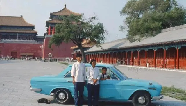 这辆小蓝车停在宫墙下,短车头圆灯罩,车漆像刚刷完的蓝釉,旁边一家三口笑得腼腆,我第一次进北京还是坐长途车,爸爸说能把车开到皇城根儿合个影,回去给邻居炫一个,现在自驾穿越拉满行程单,可当年那一张到此一游,值比一堆定位截图高多了。