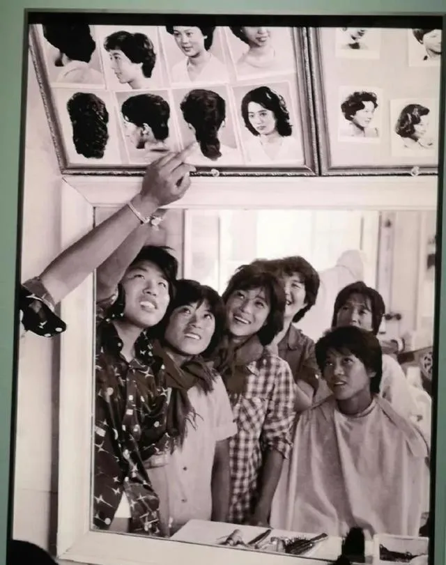 图中这面镜子上贴着一排发型样片,港风烫、蘑菇头、露耳短发,一根手指指着其中一款,姑娘们挤在镜前笑开了花,我记得那会儿我们镇上的理发店也挂这样的画,十块钱烫个小卷回家,奶奶叮嘱别洗头,卷才更耐看,现在随手搜图能挑花眼,真到了理发椅上,还是犹豫半天。