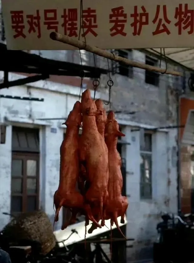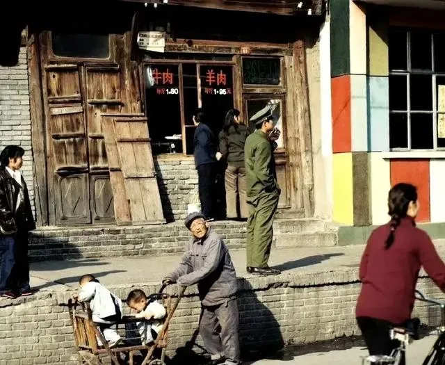 这个木门口的店叫国营肉食店,玻璃上白漆写着牛肉一块八、羊肉一块九五,别笑啊,那是斤价,门口推着板车的老爷子停下看两眼,抬头晒会儿太阳再走。