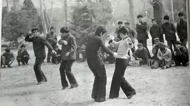 这不是功夫表演,是自带音箱的舞会,喇叭里吱呀几声就放起来,瞧那喇叭裤一摆一摆,旁边坐着递瓜子的看客,笑着打拍子,阳光正好。