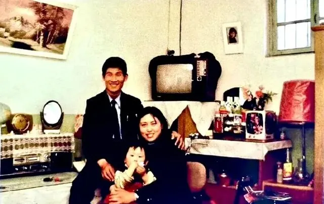 电视摆高处,桌子上堆着收录机、台灯、相框,能拿出来的值钱货全摆镜头前,爸妈搂着娃笑得见牙不见眼,那会儿拍一回照,够吹半年。