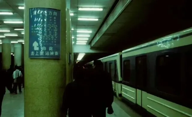 这站台的灯是日光管,蓝牌子写着换乘去处,车门一开一合,脚步声空荡荡的,别问首都那时有没有地铁,照片已经给了答案。