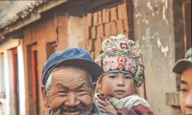 图中小帽子上绣着团花的孩童,坐在老爷子肩头叫“骑大马”,泥墙后头还码着土坯,老爷子羊毫胡子一翘一翘,笑得跟晒干的玉米粒一样亮,奶奶常说,那会儿孩子都是这么抱着长大的,没推车没安全座椅,肩膀一扛就出门了。