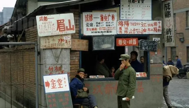 这东西叫老长途售票亭,木窗上钉满手写牌子,眉山金堂江油的去处全写得密密麻麻,小黑板粉笔价目随时改,叔叔说那会儿买票得早到,排队一拐弯,挤到窗口才知道“今儿的车满了”。