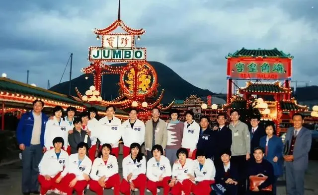 姑娘们穿着白上衣红裤子,蹲一排站一排,背后霓虹牌写着JUMBO,教练们把手背在身后笑着看镜头,我妈指着电视里喊“快看快看”,我们全家跟着拍巴掌,现在再看这张,还是一股子朝气直冲人。