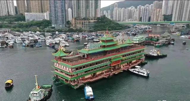 这艘大船叫水上餐厅,绿漆红窗,飞檐堆彩,像一座漂在海上的宫殿,后来它被拖行离港,新闻里一条短视频看得人心里空落落的,以前觉得它一直在那儿,现在才懂老地标也会说“再见”。