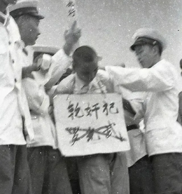 这两张都是当年的公判现场,牌子用硬纸板写上罪名,粗粗黑字吊在胸前,现场人头攒动,扬尘里喇叭声刺耳,奶奶拉着我袖子说“看一眼就走”,现在回头看,照片把那个年代的紧绷和粗粝都留住了。