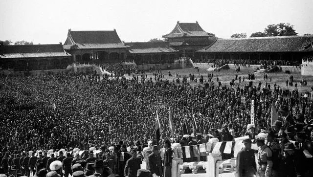 图中人海汹涌的是太和殿前的受降仪式,旌旗在秋风里猎猎作响,屋脊金兽在阳光下发亮,奶奶回忆那天她爬上景山,远远望见旗阵与人潮,心里只冒出一句话,这口气总算出了。