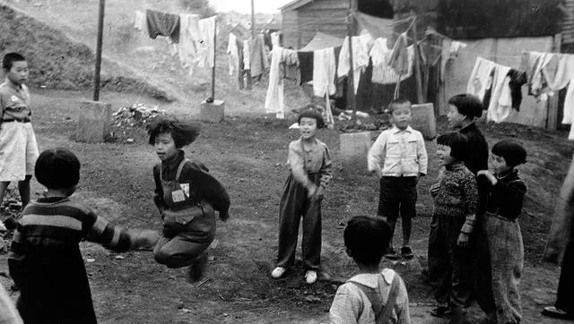 这群孩子在绳子里头跳得脸红扑扑,旁边晾衣绳拉得很长,风一吹衣角扑啦地响,谁能想到他们的身世这样拧巴,一边学汉字一边等轮船开。