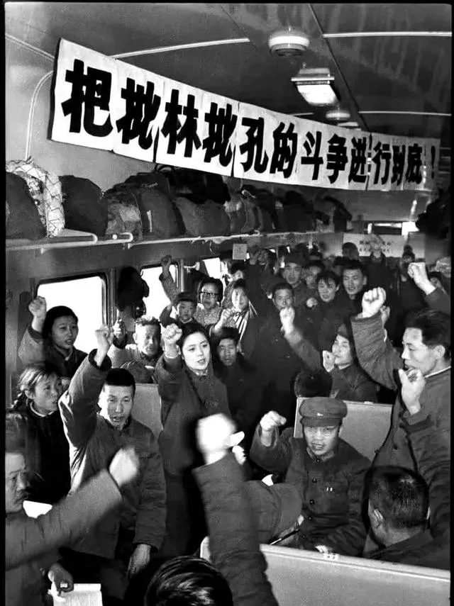 这个场景叫列车宣讲,车厢里挤得满满当当,手臂一齐举起来,那股子劲头透着一股热辣辣的直。