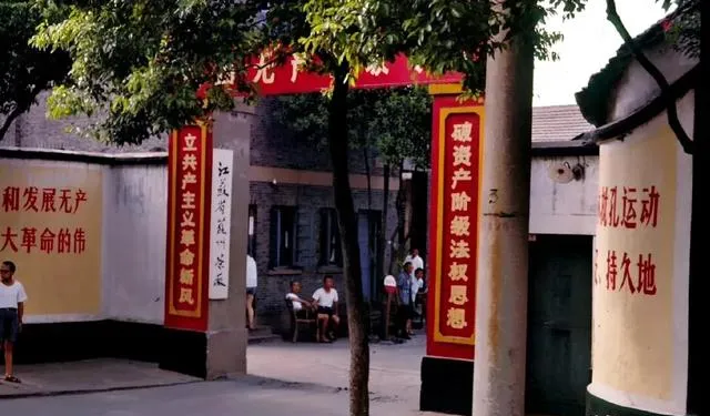 这座门楼叫茶厂大门,红底标语把墙角染得发亮,门房里有人端着搪瓷缸子坐着,风一过,树叶沙沙。