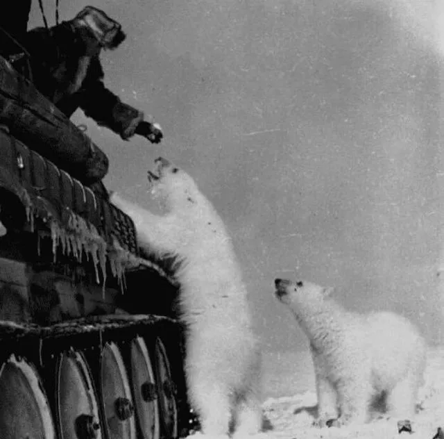 这画面叫“雪地投喂”,坦克履带上挂着冰凌,白熊站起来伸爪接食,耳边仿佛能听到呼出的雾气,小时候第一次见到这种照片,心里咯噔一下,既觉得危险,又觉得纯净,世界很冷,可人心有热度。