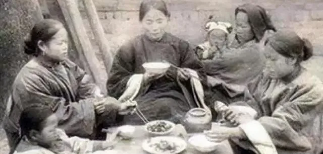 图中这一桌子叫家常饭局,粗陶罐子里多半是咸菜或豆腐乳,女人们袖口宽大,棉袄面是暗纹土布,围坐一圈的姿势最耐看,手里端着粗碗,筷子一搁一夹之间全是生活的声气,我外婆说那会儿吃饭得讲究省字诀,米饭蒸得紧,菜用油省着淋,孩子在旁边掰馒头边听大人聊天,听着听着就学会了家里的规矩,放在现在,谁还围着一只土灶慢慢煨粥呀,电饭煲咔哒一响就开饭了。