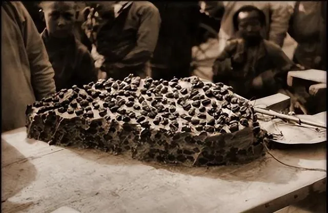 桌上这坨黑乎乎的是黑糖大板,里头嵌着花生丁,老板手里一把铁铲,咔嚓一下就是一块,甜味直往鼻子里钻,小孩子围成一圈就等那句,来,尝一角。