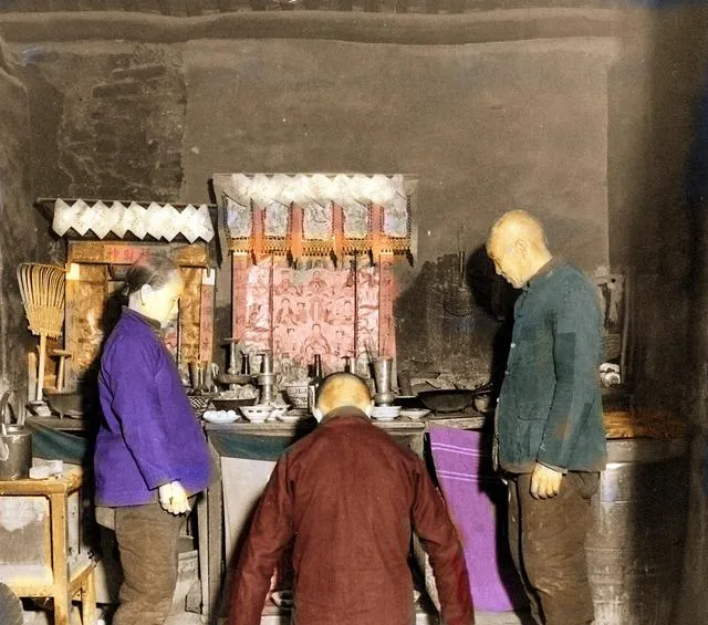 这个角落叫家堂,供台上摆着纸扎幡和香碟,侧边还供着观音像,一老一少跪下叩首,媳妇在旁边端碗添水,逢节令必拜,先人有灵,保佑来年风调雨顺,仪式并不铺张,可心里沉稳。