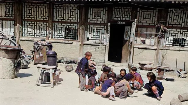 这个水缸边的玩耍叫弹玻璃球,孩子们围成一堆,裤膝都磨得白亮,门楣上嵌的窗棂花格好看又结实,太阳一偏,影子切在地上,玩到饭点才散,家里一吆喝,鸡飞狗跳地收场。