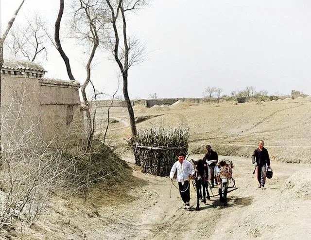 这辆是双骡小车,车厢里码着秫秸,车把上挂着水葫芦,男人们沿沟走,车轮在砂石路上吱呀吱呀,赶一趟回来,手心都是茧子,过去拉的不只是货,也是日子的筋骨。