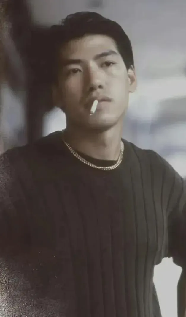 这张倚墙的年轻人照片,烟叼在嘴角,黑毛衣贴身,链子亮得扎眼,八十年代的文艺青年就这股劲儿,冷脸里藏着不服输的火,我表哥看见直说像当年录像厅门口那股范儿,现在镜头清清楚楚,少了点糊出来的棱角味儿,却也干净。
