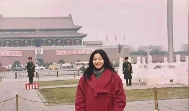 这张红外套的姑娘站在广场前,眉眼生动,发梢卷卷的,背景旗帜飘着,她笑得很亮,像刚从剧场里出来的青年演员,那会儿合影都得挑晴天,卷好胶卷才舍得按一下快门,现在手机连拍几十张,反倒更难挑出最好那一张。