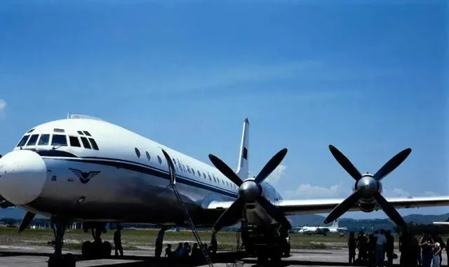 这架大肚子四桨飞机叫伊尔18,机翼下螺旋桨像四把风扇,太阳下一闪一闪的,机场边上人影一片,乘凉的蹲着聊天,那个年代登机还得从大卡车上搭板上去,我爸第一次坐飞机就是这种,回来说耳朵嗡了两天才缓过劲儿。