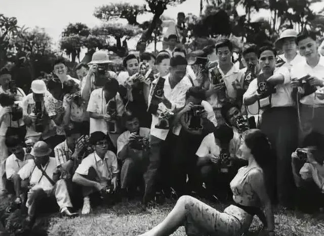 草地上围成一圈举着相机,模特坐在地上侧过脸,这是摄影师赶场的光景,旁边人肩上挂着双机位,胸口还背着测光表,那时镜头不多,靠腿找角度,靠天吃饭,老师傅说一卷只有三十六张,每一张都得掂量着按。