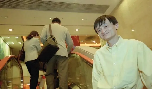 图中这位穿浅色衬衫的年轻人,笑得有点腼腆,手插在口袋里,身后是那种橘红扶手的老式扶梯,商场灯光偏黄,镜面顶板反着光,二十年前的写字楼大多这个调子,塑料味儿加地毯味儿混一起,周末上来逛的人不多,安保也随意得很,那时候做事讲“冲劲”,口袋里手机是小灵通,短信一响,感觉机会就在楼上等着你呢。