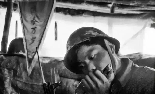 这个年轻士兵头盔压得低低的,眼睛盯着口琴,指腹按在金属片上,身旁的旗子写着“万岁”,泥土气和汗味混在一起,他大概在想家吧,曲子一折一返,像风从山坳里穿过去,以前写信要等很久,现在按个视频就能见到人,可思念这玩意儿,还是不分年代的。