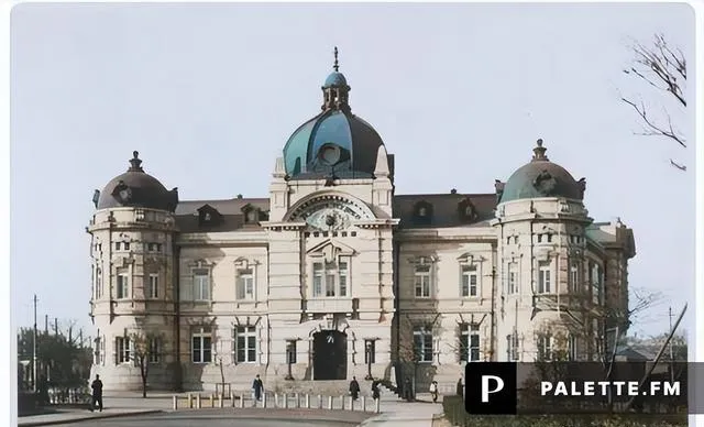 图中这幢厚重的建筑叫大连银行旧址,灰白石材皮子,转角是半圆柱,窗楣全做了花纹,屋顶冒着两根高高的烟囱,像两支铅笔杵在天上,门口有马车缓慢地过,人影从林荫道里钻出来,节奏一下就慢下来了,奶奶说以前逛大广场就像去赶集,穿最好看的呢子大衣,沿着树影一圈圈地走,现在我们走广场多是随手拍一张就走人了。