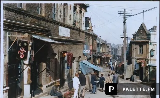 图里这条街老辈人叫山货街,两侧是砖皮小楼,木檐下挂着招幌,写着“当”字的招牌黑底红字,格外扎眼,门口有挑担的汉子,肩上的扁担骨头节咯吱一响,铺子里有人递秤杆,有人伸手抹布擦匾,场面闹哄哄的,爸爸说那会儿买缝纫线得掐指头算寸,现在超市一整排摆着,挑花眼的不是货,倒是我们。