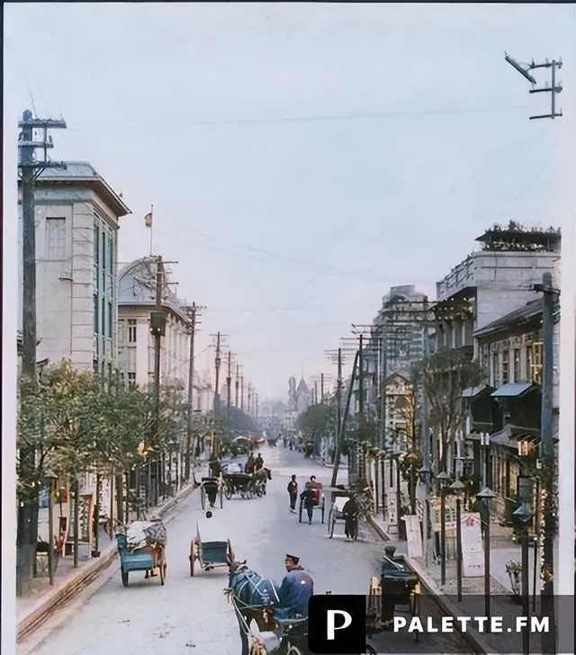 这条路多半是中山路一线,马路像拉直的皮尺,电线从两边杆子上像蜘蛛网一样扯过去,黄包车在前面晃,马车跟在后头,路边的路灯高个子站成队,最有意思的是远处的楼顶,绿植盖满边沿,像给房子戴了条花环,那时候的城市爱把规矩做在细节上,现在我们喜欢把速度写在天桥上,谁也不算错,只是味儿不一样了。