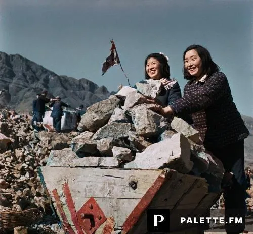 这车叫斗车,两位姑娘把石块码得满满当当,最上头还插着一面小红旗,阳光下红得喜人,旁边有人打趣,说别看轻女力气,小胳膊一较劲,照样能干大活。